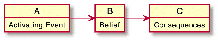 A - Activating Event/The situation in which emotions arise. B - Beliefs/Assessment of the situation (thoughts that arise in response to what happened; the core beliefs of a person influence the emergence of thoughts). C - Consequences/Reaction (how a person feels and behaves when such thoughts arise).